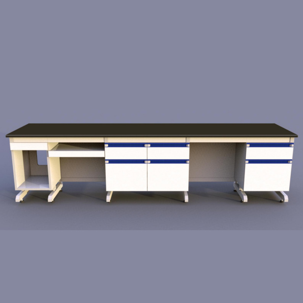 实验台柜体设计 ,建议用户让实验台留出坐人的空位或电脑键盘架位 ,就算目前用不上以后有可 能会用上 。这样不但设计更人性化 ,还有利于多采用标准柜体 ,可以把多余的尺寸留到空档内 , 同时可节省材料。